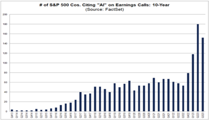 This earnings season has highlighted how rapidly artificial intelligence is becoming a ‘real thing.’ The last several years have witnessed the market go bananas over hot topics, like when Facebook rebranded to Meta because the Metaverse was the next big thing. For a six-month stretch, the rush to establish a foothold in the digital universe was palpable among CEOs, but that discussion, along with GameStop and NFTs, faded into memory. That’s not the case with AI, and the financial impact is already becoming evident.