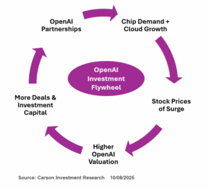 - Stock prices of chipmakers and hyperscalers surge on the back of investor optimism, while OpenAI’s valuation also rises as they’re viewed as the central player within the AI ecosystem.