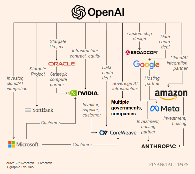 Here’s a handy illustration from the Financial Times that shows the intertwined nature of all the companies that are piggy-backing on OpenAI’s ambitions.
