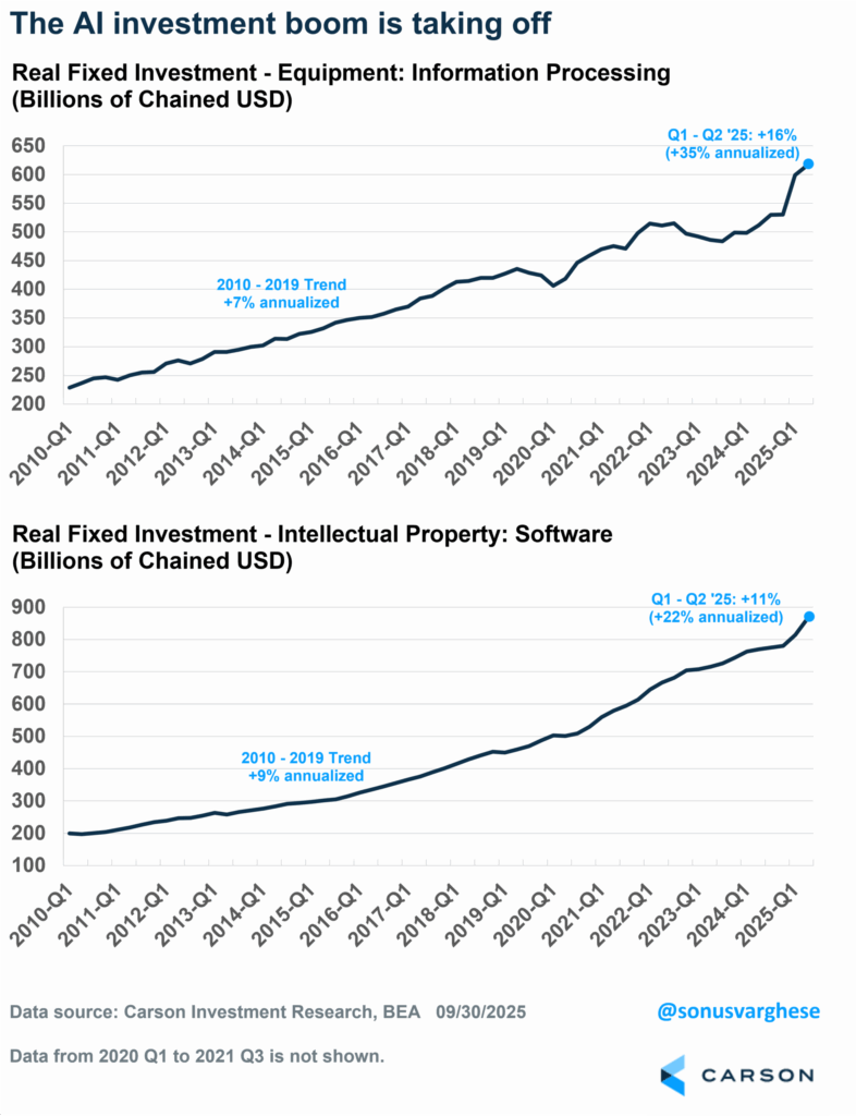 It’ll be interesting to track how large, as a proportion of GDP, AI-related investment becomes, though if the shutdown continues, we’re not going to get Q3 GDP data anytime soon.