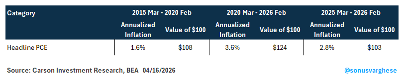 Here’s the non-inflation-adjusted “nominal” data. From February 2020 through March 2026: