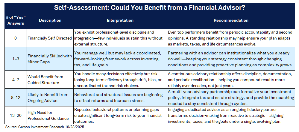 - Do you have a trusted, knowledgeable sounding board for major financial decisions?