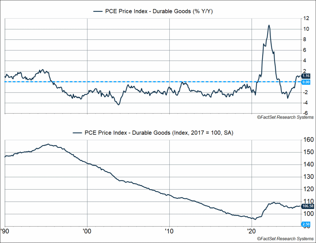 - Globalization is reversing, and we probably won’t see goods prices fall consistently as they did from 1996-2020. Instead, we’re likely to see more volatile inflation for goods, especially as the tariff mess continues.