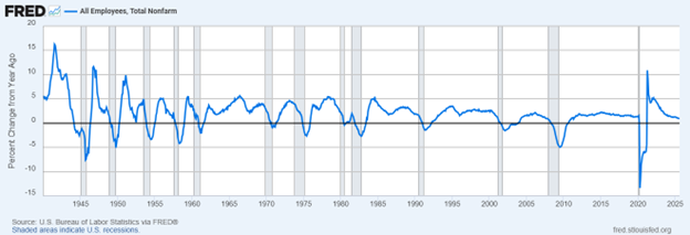 We think robust labor growth in the current environment is very unlikely. But what we think is entirely feasible is avoiding the snowball effect that often happens as the labor force slows, supported by the factors listed up top. Yes, the president is pushing policy (deficit-financed stimulus, lower rates) that usually only starts happening in a sharp economic decline, but when that decline starts to happen it is often too late and the economy has clearly slowed from the near-3% growth we had in 2023 and 2024. Further, any policy debate aside, what’s unambiguous is these are policies that markets tend to favor, at least until the data starts moving in a compellingly negative direction. But even in the middle of a government shutdown data gap, the numbers we’ve seen are far from compellingly negative. That might be damning with faint praise, but when stimulus is flipped on that’s usually good enough for market.