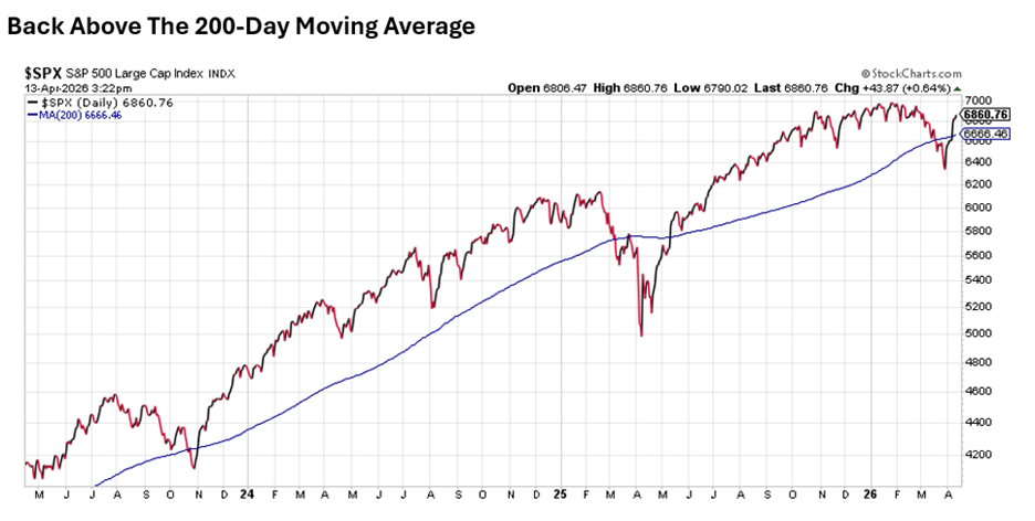 Since the war started I’ve been asked many times what I wanted to see for clues the worst may be over and I always gave the same answer: We need the S&P 500 to get back above its 200-day moving average and we needed to see some late week buying. Let’s look at those two things first.