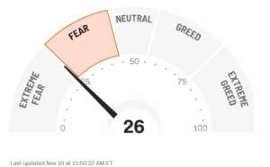 Here’s the latest CNN Fear & Greed Index (as of Monday morning), which is still firmly in the fear / extreme fear range.