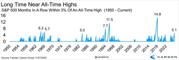It continues to amaze me how fearful many investors get when faced with fairly normal market volatility. Last week, everyone became a market breadth expert and we were told only a few stocks were going up (which wasn’t true). We’ve also been bombarded with scary sounding warnings like Warren Buffett holding record cash, Michael Burry (of The Big Short fame) going bearish on high flying AI names, and large bank CEOs openly calling for a market correction or bear market. If that’s not enough, chatter about something called the Hindenburg Omen (now there’s a scary sounding name) has been everywhere.