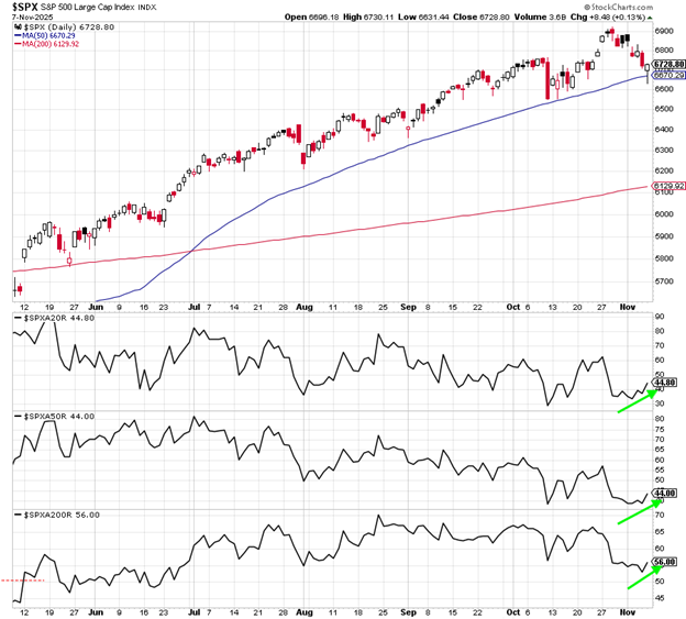 Let’s focus on last week for a second. All we heard was how bad things were, yet seven out of the 11 sectors finished higher on the week and eight sectors outperformed the S&P 500. Yes, it was the large cap tech (and tech adjacent) areas that struggled last week, pulling down the major averages, but under the surface things weren’t nearly as bad as many claimed. In fact, the number of stocks in the S&P 500 that were above their 20- and 50-day moving averages actually increased last week, while those above their 200-day moving average was flat. That my friends suggested breadth improved under the surface.