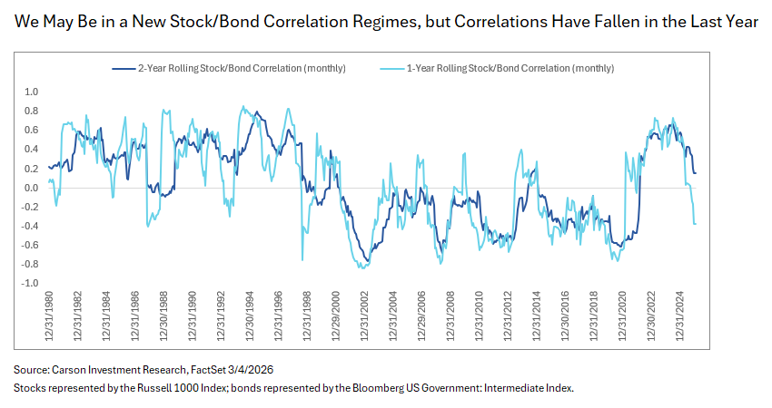 But both tactically and strategically, we have actively sought ways to enhance diversification other than simply allocating to bonds. That has included an allocation to gold (which we first added in 2023), use of managed futures (a trend-following strategy with a historically low correlation to both stocks and bonds that can have long or short exposure to a range of commodities, currencies, bond indexes, and sometimes stock indexes), real assets, and even low volatility stocks. We still believe bonds play an important role in a portfolio, but the shift away from steady rate declines of 1981-2020 requires a more thoughtful approach.
