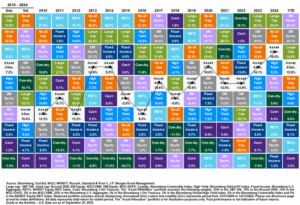 Longer-duration assets outperformed as rate expectations softened, while credit-sensitive sectors benefited from tightening spreads and declining default risk. Despite positive returns, investors continue to face a more correlated stock-bond environment than in the prior two decades, underscoring the value of true diversification across asset classes. Going forward, the path of returns will depend heavily on the Fed’s success in engineering a soft landing, but the reset in yields has restored bonds’ relevance as a strategic holding.