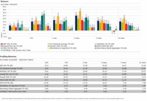 U.S. stocks delivered strong gains in the third quarter across the capitalization and style spectrum. Large-cap growth continued to lead the way, powered by robust performance in technology and communication services, but value and small caps also joined the rally as investors broadened their exposure beyond the market’s largest names. Resilient corporate earnings, optimism around AI-related innovation, and growing expectations for future rate cuts combined to fuel a steady, broad-based advance.