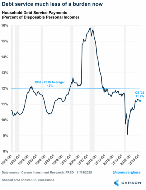 All we hear day after day is how bad the consumer is doing, awash in a sea of debt. Is this true? Well, certain consumers are clearly struggling, but on the aggregate things aren’t so bad.