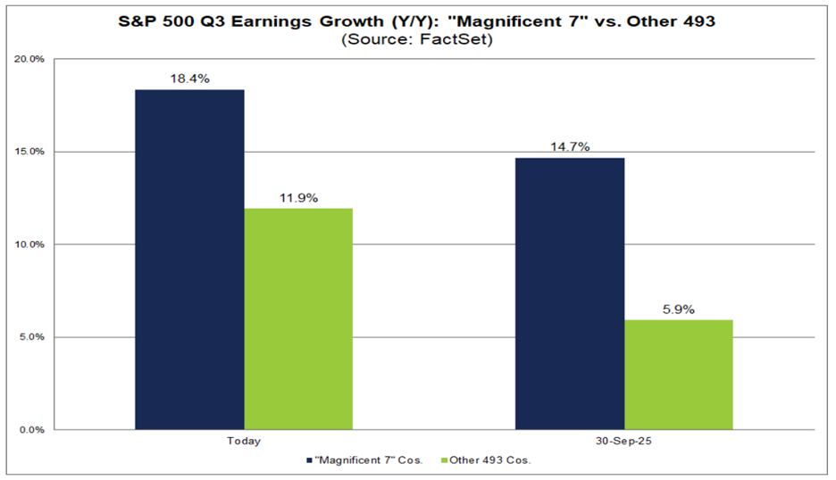FactSet’s John Butters does amazing work on earnings and he found that Mag 7 earnings were up 18.4% this quarter, a very strong number and much better than expected two months ago. But what many seem to consistently ignore is how well everyone else is doing. That’s right, the 493 has seen earnings up nearly 15%! Yes, those big seven (not six, but seven) names make a LOT of money, but the other 493 are doing just fine.