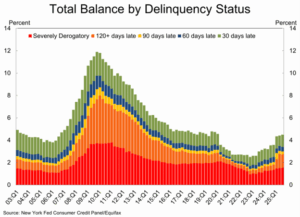 Recent data from the New York Fed showed that 95.5% of all debt is paid on time. This is down from 95.6% last quarter, but it is still above the 95.3% in Q3 ’19 or the 93.3% in Q4 of ’07. Peeling back the onion even more showed that 120-day delinquencies actually improved and those that were severely derogatory were flat.