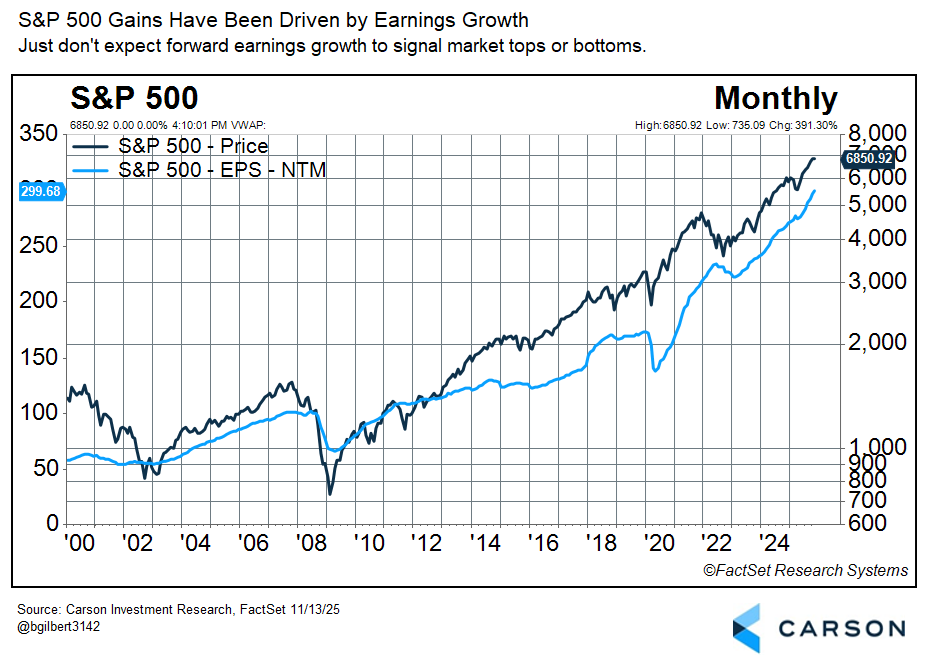 I sometimes get asked about the most important things I consider when thinking about the longer-run outlook for markets. For me, the answer is easy. 1) In the long run, stocks track earnings because earnings drive returns. 2) In the long run, yields drive bond returns. That’s just two short sentences, but it’s the starting point and both are often forgotten in the emotional day-to-day or even year-to-year ups and downs of markets.