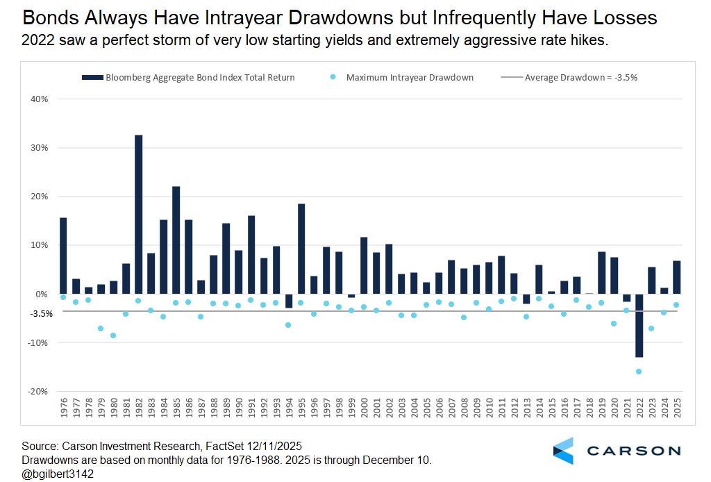 - The Bloomberg US Aggregate Bond Index is having its best year since 2020 and outpacing 1-3 month Treasury bills by almost 3%-points.
