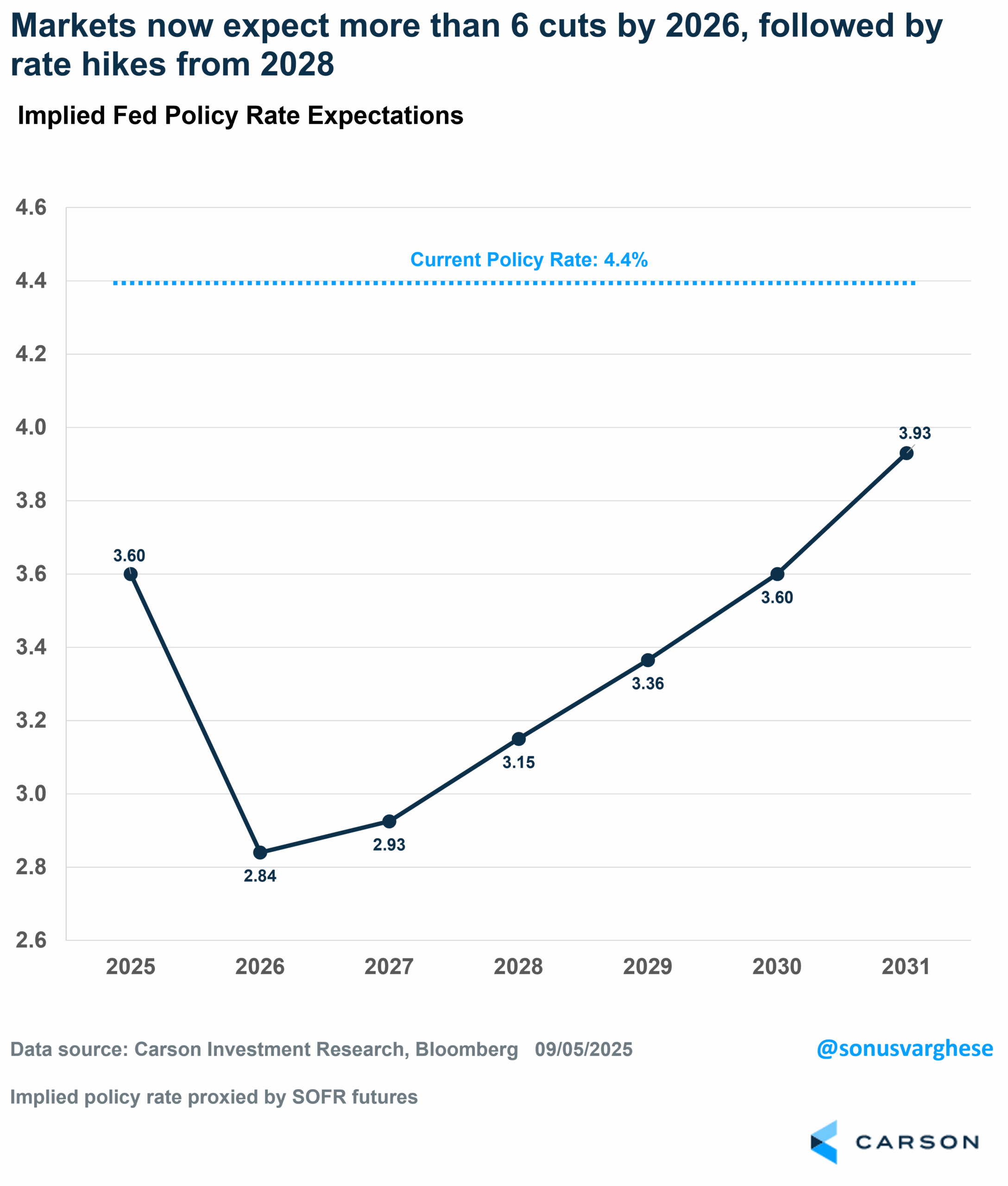 I’d be cautious about treating bad news as good news. Bad news is bad news, especially when it comes to rate cuts that are being driven by labor market weakness. Yes, consumers can take on debt to fund consumption if rates are lower, but not if they’re worried about their job (or if they don’t have one). Contrast this with rate cuts that come about amidst a strong labor market and productivity growth – which would drive inflation lower. That would be really good news (similar to the mid 1990s), but it’s not what we have now.