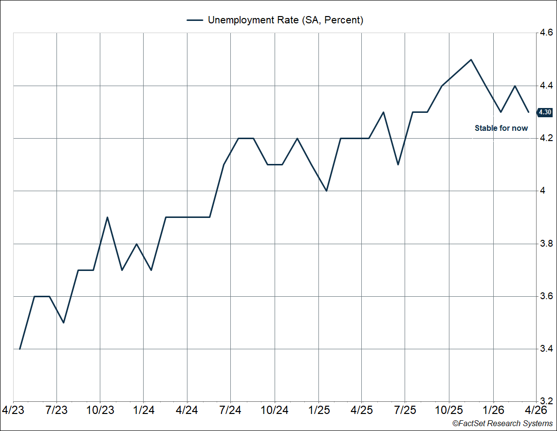 This is why it’s probably better to focus on the ratios like the unemployment rate right now. And the news is good. The unemployment rate fell from 4.44% in February to 4.26%, the lowest since last June. The only wrinkle here is that the apparent drop is because a lot of people looking for jobs have dropped out of the labor force and stopped looking for work (so they’re no longer counted as “unemployed” by the BLS). Nevertheless, the big picture is that the labor market cooled a lot after 2023. That cooling accelerated in mid-2025, which is essentially what prompted the Fed to cut rates by 1.75%-points. But things have stabilized over the last four months.