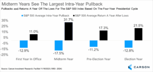Get ready to hear this a lot, but historically midterm years are indeed the weakest during the four-year presidential cycle. In fact, think back to 2018 and 2022—both saw vicious stock declines and negative returns for the year.