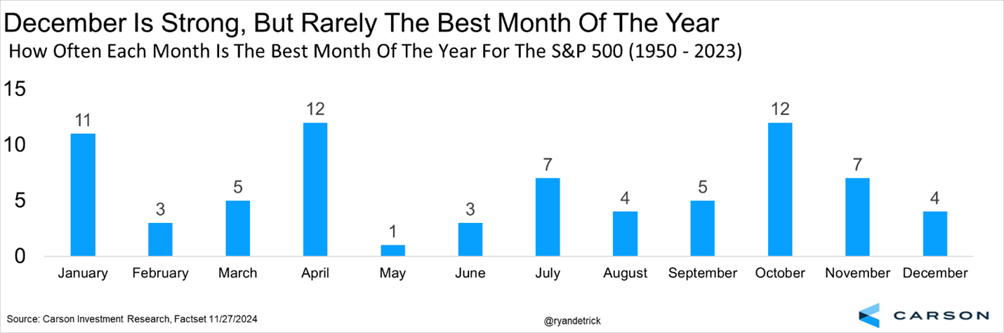 Here’s the flipside to this. December has been the best month of the year four times, but months like April and October have the most at 12.