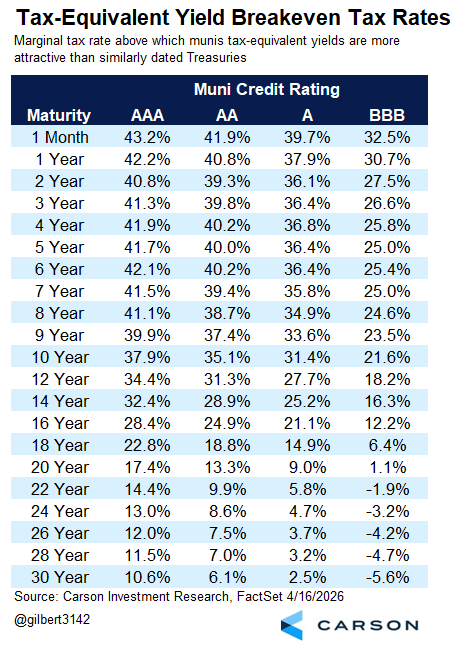 I’ll add a comment here that, while often ignored or given insufficient attention, Carson pays close attention to after-tax returns, both in our investment management and in how we deliver financial advice. Using municipal bonds the right way is just the starting point. If you want to learn more about what Carson can do around taxes, I recommend following Debbie Taylor, Managing Partner and Chief Tax Strategist at Carson Wealth.