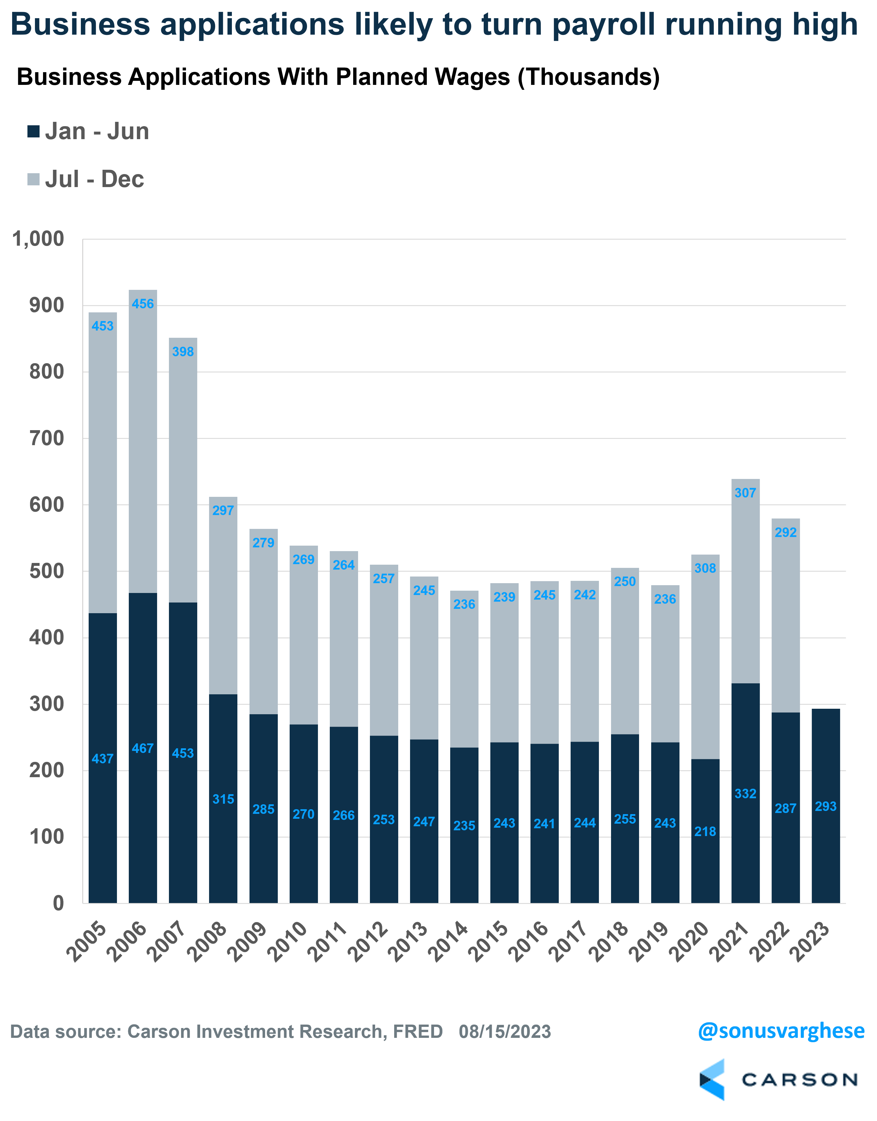 There were more than 293,000 such business applications in the first half of 2023, which is 2% higher than what we saw last year. It’s also 21% higher than what we saw in the first half of 2019, the year prior to the pandemic.